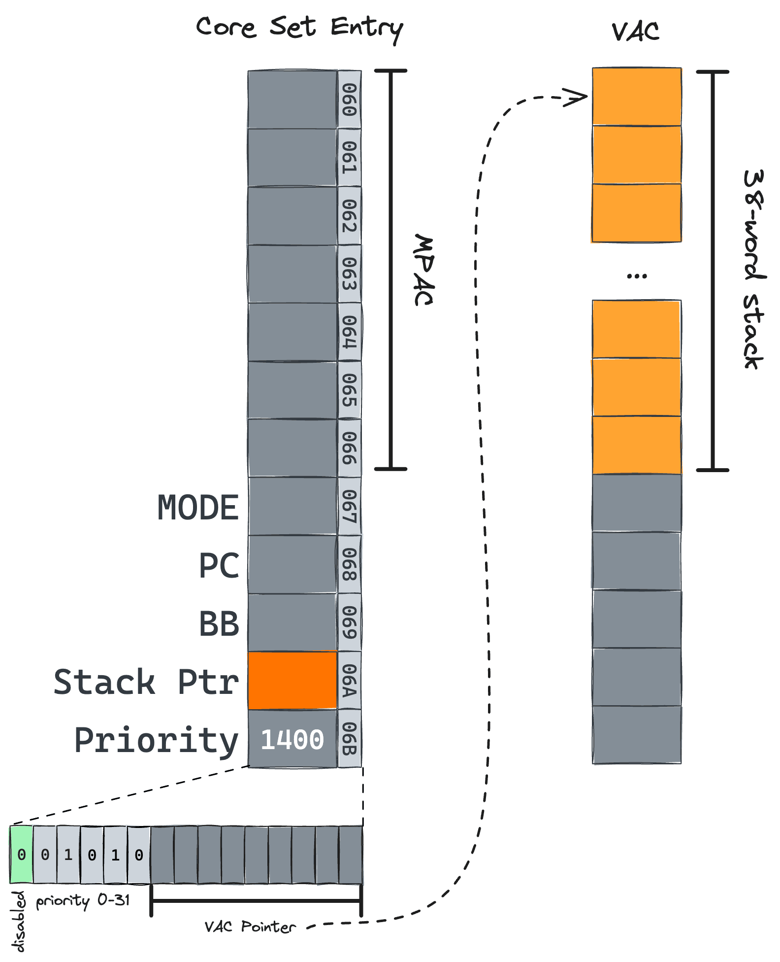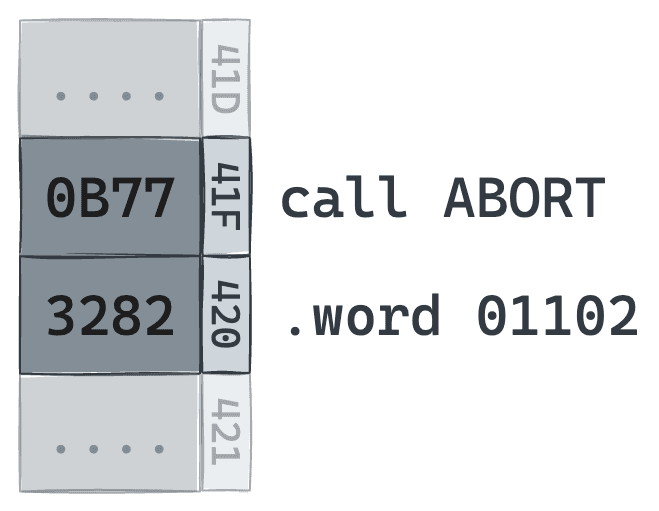 The memory model is the cornerstone of the instruction set. Memory consists of 4096 cells numbered hexidecimally (The AGC docs are largely written in octal, but I CBF, octal memes abound in the footnotes) from $000 - $FFF (the dollar sign is used as a shorthand prefix for hex values). Each cell consists of a 15-bit word numbered between $0000 and $7FFF: